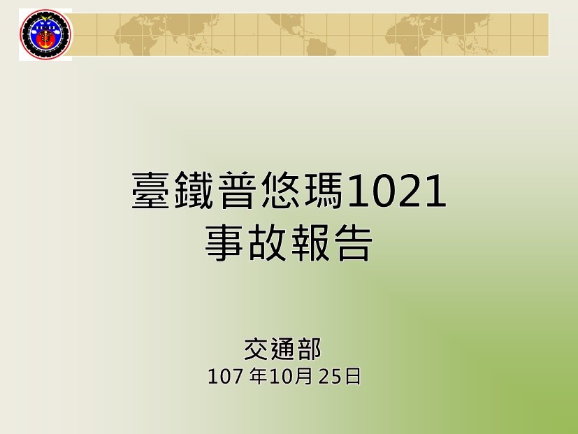 台鐵普悠瑪21日翻覆,造成18人身亡210人受傷,外界關注「司機有無回報列車自動防護系統(ATP)」關閉」之際,根據行政院25日行政院會後記者會提供的交通部「事故報告」,PPT頁數僅只有6頁,由於擔心未審先判,所以沒有提到究責和事故調查等資料,其中一頁還滿滿都是總統蔡英文或行政院長賴清德如何慰問旅客的方案。