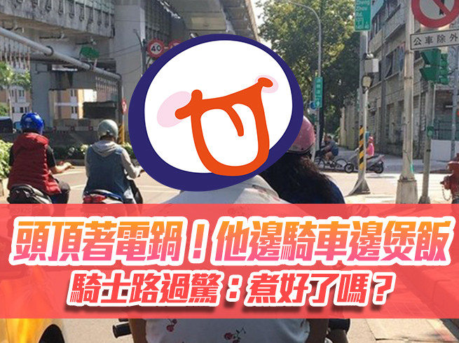 網友在臉書「爆廢公社」社團中貼出一張照片,他正在一個十字路口等紅燈,忽然注意到前方的騎士安全帽非常特別,紅色的安全帽正上方有一個電鍋的蓋子,旁邊還有煮飯的電源和飯匙,就連電鍋兩個黑色把手也一模一樣,看到這一幕他趕緊用手機拍下來,還開玩笑說,「大哥,你知不知道你們家現在都沒飯可吃嗎」。