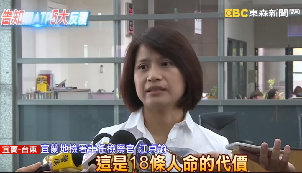 宜蘭地檢署主任檢察官江貞諭表示,此案不是單一層面的問題,檢方會就此事的全面性去偵辦,「我們也很難過地講,這是18條人命的代價,我們不會輕忽」,責任不會1個人扛。