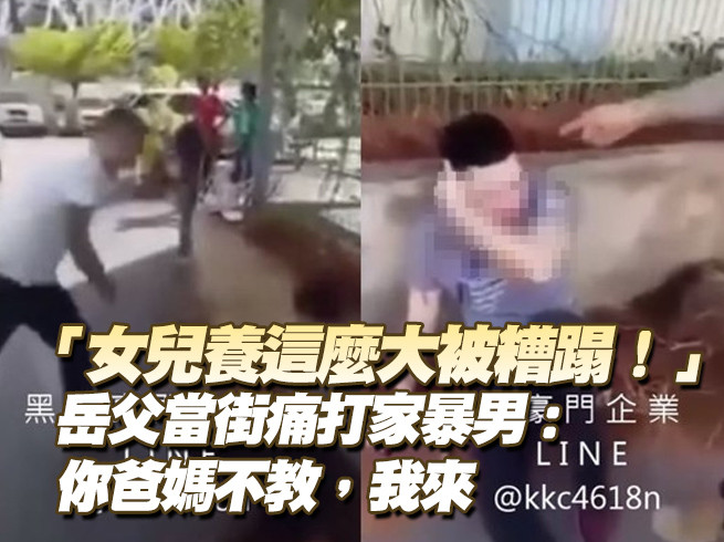 「我女兒是給你打的嗎!」臉書日前瘋傳了一段岳父當街教訓女婿的影片,內容是一名渣男不但家暴自己的老婆,生了女兒也不願意照顧、不願花錢養;岳父知情後氣瘋就當街暴打渣男,一邊打一邊罵「你打我女兒,你爸爸沒有教你,你媽媽沒有教你,今天我來教你!」影片曝光後立刻引發瘋傳。