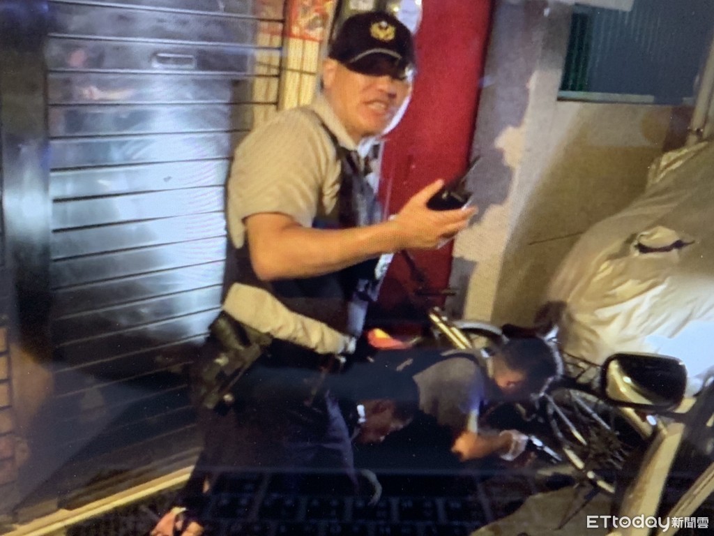 ▲所長吳明忠用槍抵著林姓男子,心想「同仁安危」 。(圖/記者吳奕靖翻攝)