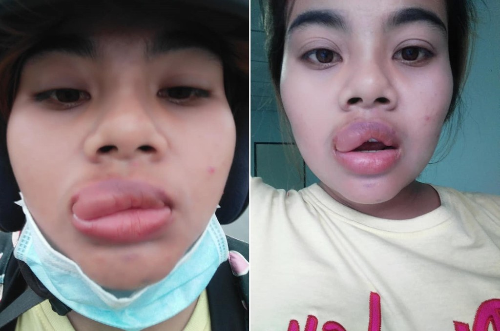 「幸好我現在狀況還算不錯。」25歲的E'Noonizzy Niz提到,之所以會變成這樣是因為朋友到外地旅遊,買了一包鹹酥蝦當作伴手禮,她本來就很喜歡吃蝦子,過去也沒有任何過敏反應,於是很開心拆開連吃2隻,結果不到10分鐘就感覺口腔嚴重搔癢,接著上下嘴唇就腫了起來。