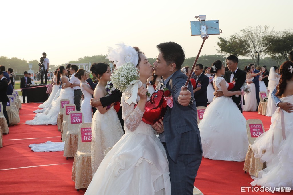 李孟諺表示,今年活動和往年一樣,報名都相當踴躍,吸引100多對新人參加,除了台南在地的新人外,也有10多對來自其他縣市,顯見台南的確是個浪漫的城市。當中年紀最大是50歲、最年輕的是25歲,每對新人都有不少交往時的甜蜜小故事。