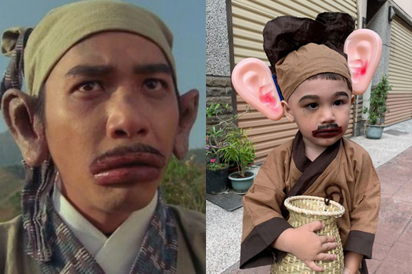 照片上可以看到,男童的服裝不僅高度還原《射鵰英雄傳之東成西就》內的歐陽鋒,連焦黑醒目的香腸嘴及大耳都忠實重現,唯獨不同的是多了幾分可愛和稚氣,讓人看了忍不住嘴角上揚。