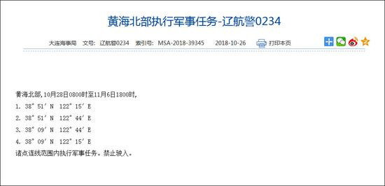 ▲遼寧海事局日前發布0234號航行警告。(圖/遼寧海事局)