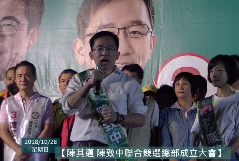 ▲陳致中競選總部成立,父親陳水扁上台力挺。(圖/翻攝陳致中臉書)