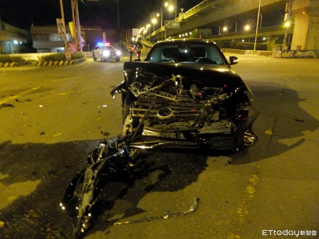 ▲台76線賓士車撞翻救護車,車頭全毀。(圖/記者唐詠絮翻攝,以下同)