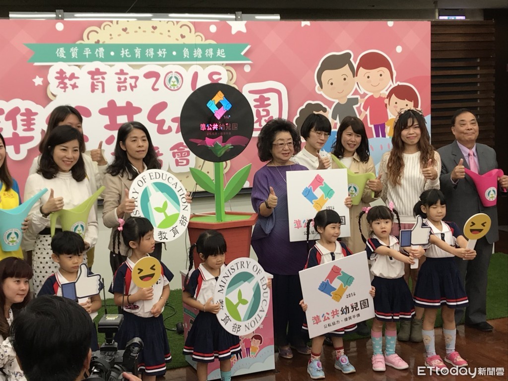 教育部推動準公共化幼兒園,截至目前為止,已有275間、36%私立幼兒園與政府合作。教育部表示,就讀準供共幼兒園的家長每月繳費不超過4500元,第3位幼兒就讀又可以再減1000元,也因為準公共化的政策,共計受惠3萬名幼兒、3萬個家庭減輕了負擔,讓許多家長感受到評價的教保服務。
