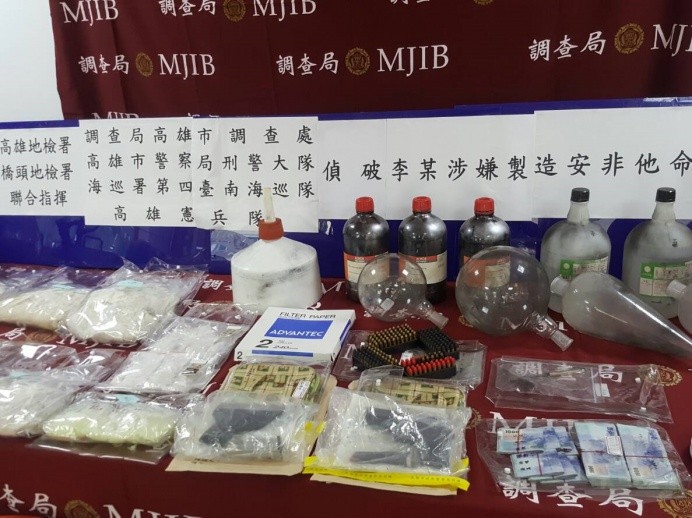 憲兵指揮部30日指出,轄屬204指揮部高雄憲兵隊,接受高雄地檢署檢察官指揮,並結合高雄市調查處、市警局刑警大隊及海巡署等相關檢、警、調單位,組成聯合專案小組,破獲攜帶槍械毒品通緝犯製毒工廠,其中查扣手槍2把、子彈190顆、海洛因100公克、安非他命105公克、麻黃素成品10,930公克及半成品263公斤、不法所得新臺幣27萬元及其他證物共59項,並逮捕李姓嫌犯到案,即時防範毒品及不法槍械流入社會,影響社會治安。
