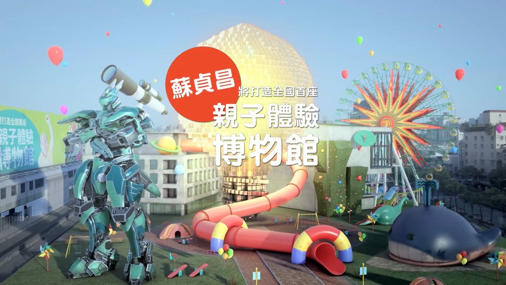 「衝!巨獸退散,都市再生!」是蘇貞昌的第一支政策動畫影像,將生硬的政策用動畫影像加上有趣可愛的卡通人物,像是恐龍、外星人等,短短時間內就創下百萬的瀏覽人次。蘇貞昌第二支動畫影像29日發布,影片一開頭,就看到兩個人一大一小彷彿正要準備停機車,沒想到按下按鈕後,停車場產生劇烈變化,停車場中央突然冒出黃色的巨型球體,而這就是蘇貞昌將打造的博物館。