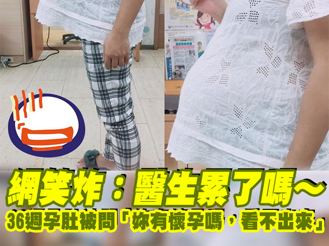 原PO一出診間馬上請老公拍照,「36週了被專業的醫生說看不出來懷孕我該高興嗎?」仔細看看照片,原PO身穿白色短袖雕花上衣配黑白格紋長褲,站側身的她很明顯肚子隆起,外加女網友四肢算纖細,更不可能是鮪魚肚或啤酒肚,而且她是到婦產科就診,怎麼樣都猜得出原PO是孕婦。