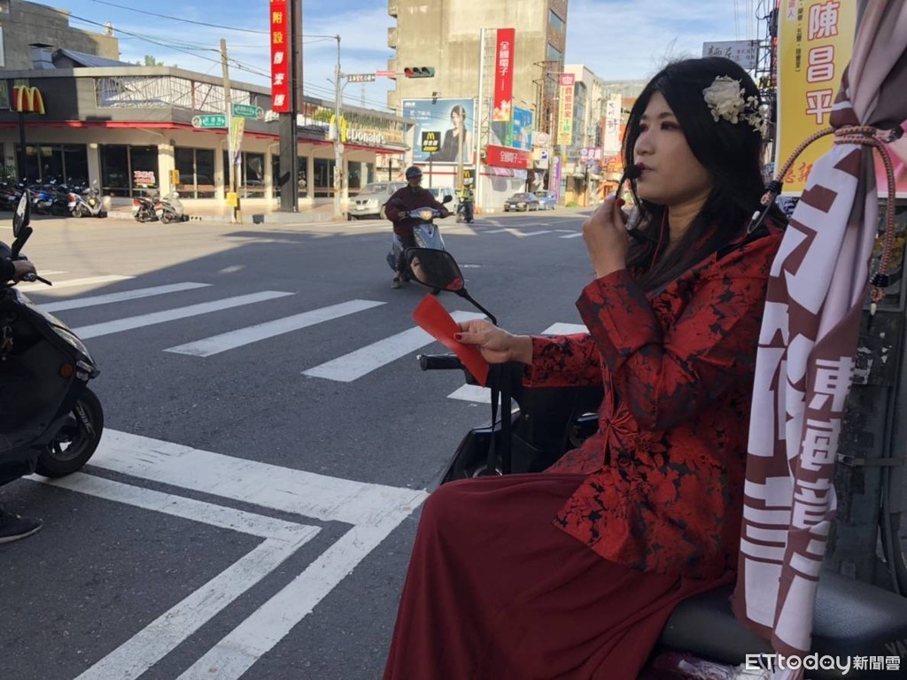 ▲余筱菁說一般萬聖節的扮鬼都是以西洋鬼為主,她認為可以和台灣民俗結合,尤其是「冥婚」更是一個神秘讓人又好奇又害怕的活動,所以才突發奇想將自己打扮成「鬼新娘」。(圖/余筱菁提供)