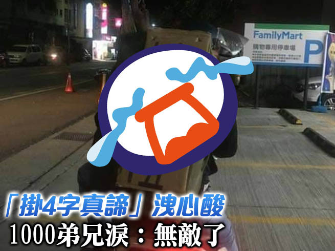 從女網友PO出照片可見,一名男子頭戴安全帽、穿著黑外套、牛仔褲坐在機車上,後面還背著一個長型墨綠大背包,上面4個大字「扲(編按:應為拎)北退伍」瞬間奪人眼球;不知道阿兵哥是不是太激動了,第一個字還寫錯,「令」最下面還少一點,但一點也不影響他激動的心。