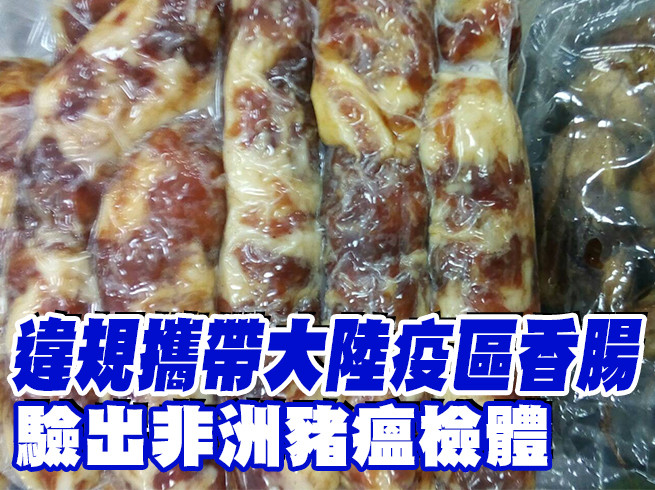 大陸非洲豬瘟疫情持續擴散,農委會防檢局今(31日)下午臨時召開記者會,說明「大陸非洲豬肉產品驗出非洲豬瘟病毒基因」,據了解,台灣查到有旅客自大陸攜帶「香腸」被驗出非洲豬瘟檢體,但被丟在金門入境的棄置箱裡,所以沒有找到攜帶的旅客。