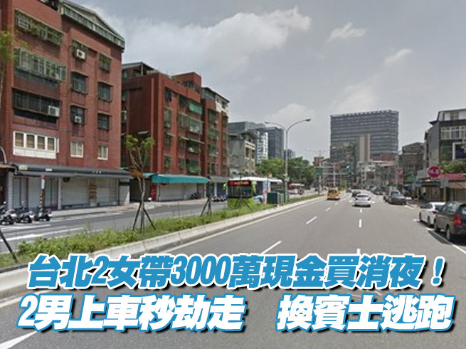 據調查,2名女子疑似受朋友委託,運送地下匯兌的3000萬現金;她們29日晚間行經中坡北路買消夜時,突遭2男持刀闖入車內搶劫。