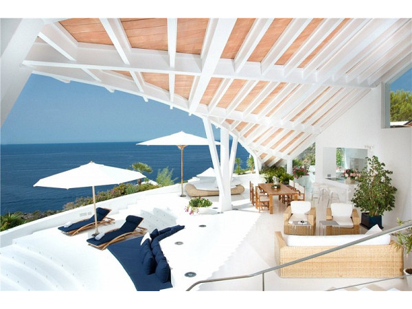 這棟美麗的別墅由西班牙建築師Alberto Rubio建造,佔地廣大的別墅位於海岸邊,室內外都擁有許多空間可使用,光是戶外躺椅、多人餐桌就擁有三四組,而每個位置都可以看到一望無際的海景。