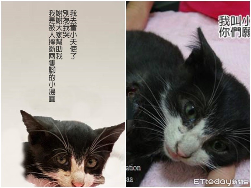 屏東縣東港鎮一隻僅出生幾個月的小貓,日前被發現「疑遭擰斷前後腳」,還被狠心丟棄在路邊,經高雄市關懷流浪動物協會趕往救援,並將牠取名為「小湯圓」,經過醫療團隊2天搶救後,牠仍睜不開眼睛、失去了溫度,成為小天使了。消息曝光後,不少網友都相當難過,留言表示,「小湯圓,來世再當個好命的寶貝讓人好好疼愛」、「孩子不痛了,要當個快樂小天使」、「兇手 我要你血債血還」。