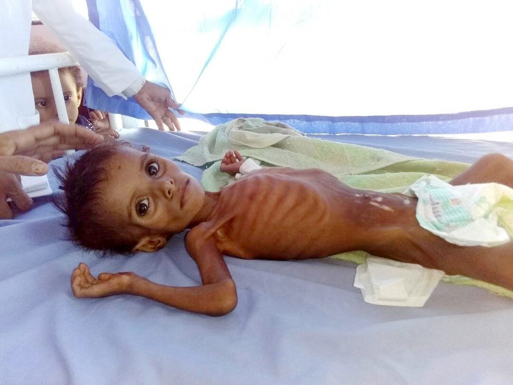 葉門7歲女孩阿邁(Amal Hussain)身上幾乎只有骨頭,沒有任何多餘的肉,她是內戰下的犧牲者,也是180萬名嚴重營養不良的兒童之一,她經常嘔吐、腹瀉,家人無力帶她去資源更充足的醫院,10月26日離開人世。她的母親瑪利亞母(Mariam Ali)說,「我心碎了。」