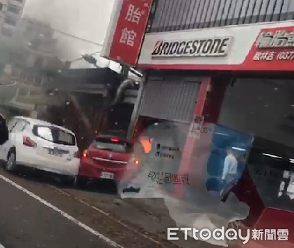 台北一名業務員開車到苗栗出差,疑似在馬路上和其他車輛競速狂飆,沒想到路口號誌變燈,業務員的車煞不住,往右撞進路邊的輪胎店,由於撞擊力道太大,小客車起火燃燒,整個過程都被拍下po上網,網友笑說「是急著換輪胎ni?」