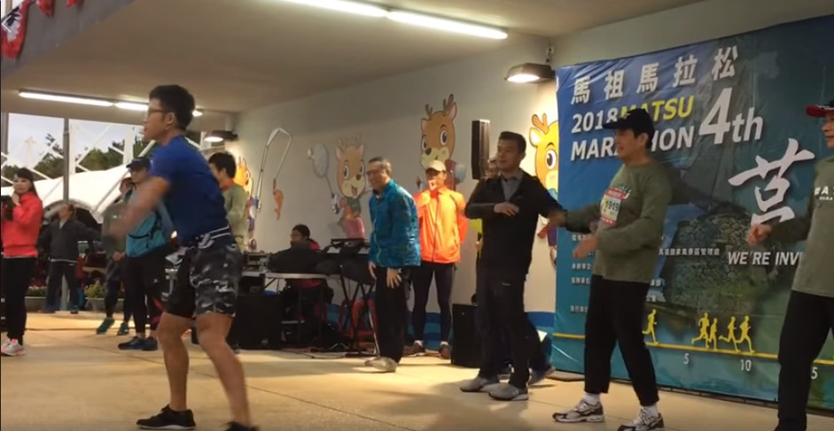 前總統馬英九3日出席2018第四屆馬祖國際馬拉松,他被邀請上台跟著教練熱身,但沒想到馬英九眼睛雖然直盯著教練動作,但扭肩、舉手卻都接連落拍,讓他也自糗說明明看著同個老師,三人節拍都不同,「我走自己的風格」;網友則直呼「總統好可愛」。