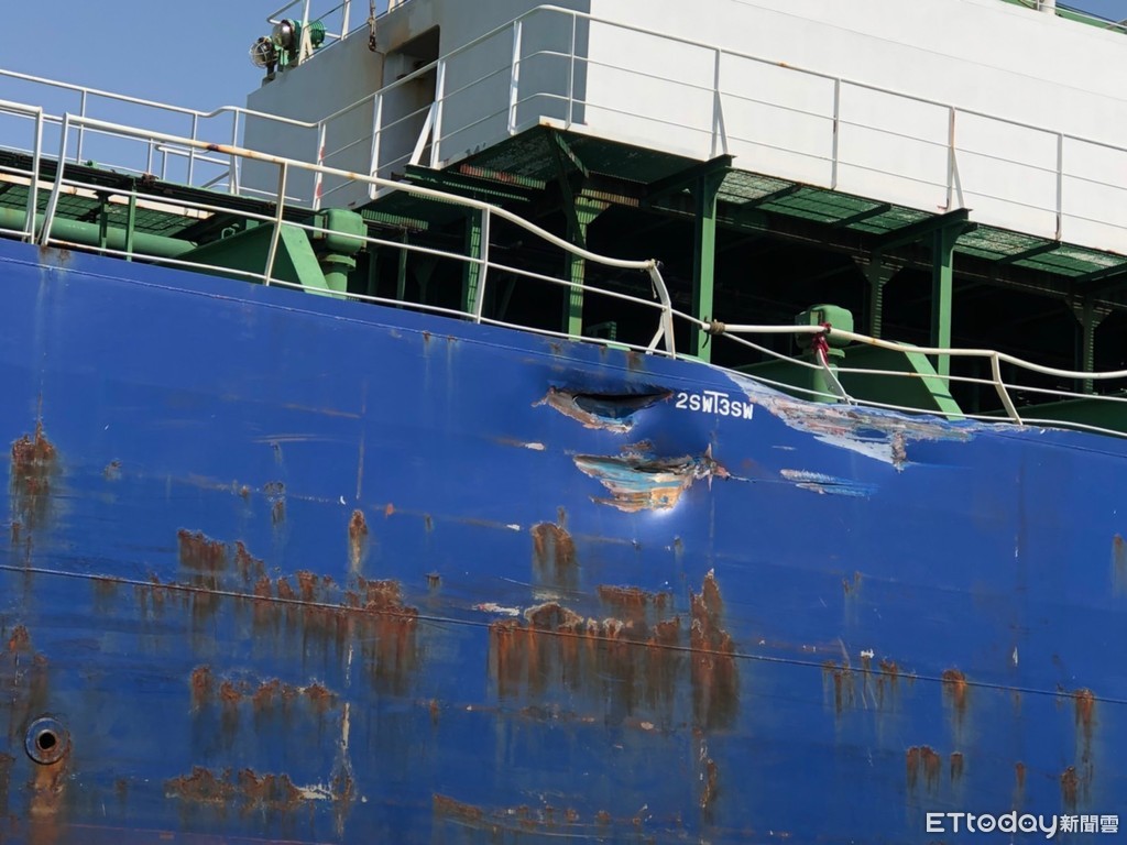 ▲高雄港3日發生一起輪船擦撞事故,所幸沒有人員傷亡。(圖/記者吳奕靖翻攝,下同)