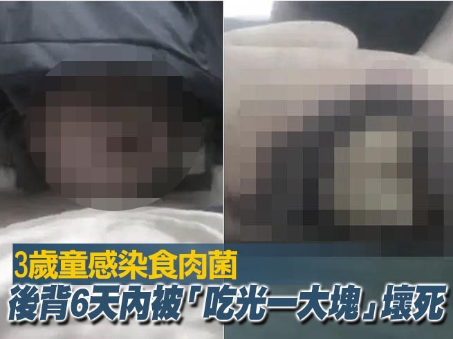 中國大陸內蒙古一名3歲男童日前背部突然長了大片紅點,家長原本以為是水痘,不以為意,沒想到幾天後男童症狀越來越嚴重,送醫急救才知道感染了罕見的食肉菌,整個背部幾乎被「吃光」,一度危及性命。
