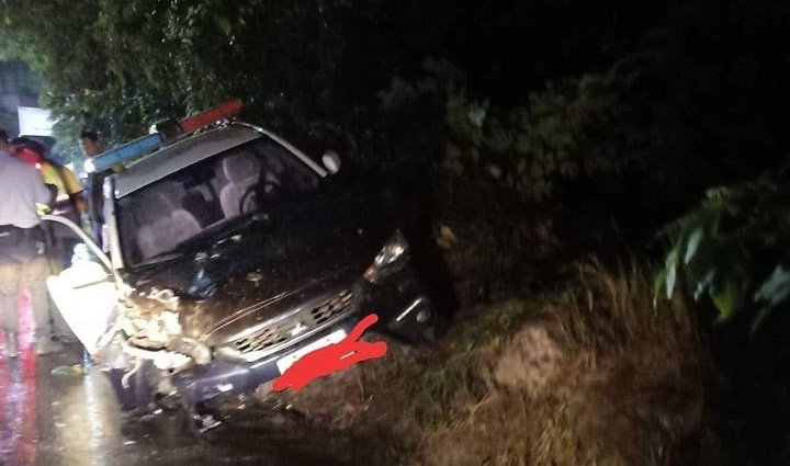 ▲桃園警追車遭逼撞山壁,2警受傷送醫。(圖/爆料公社)