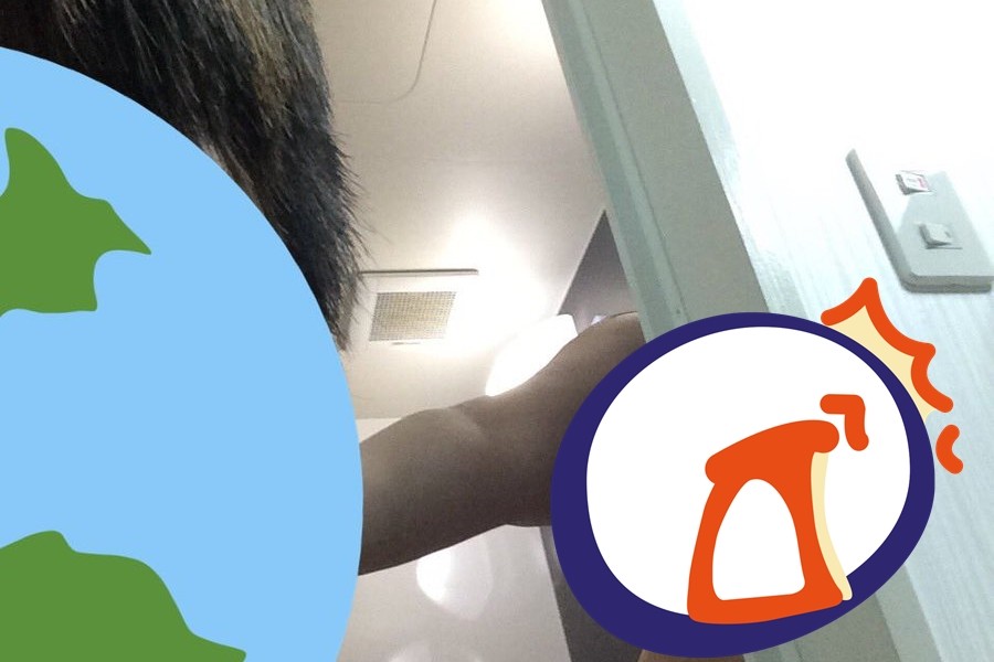 透過網友「くうねるあそぶ」分享的照片內容,只見一名男子對著鏡頭自拍,上傳照片利用emoji的地球符號遮住自己的臉,然而旁邊右方卻有一名類似肉體的不明影像,看不出來當事人的外在性別,但身體看起來明顯豐腴,肉與肉之間甚至有深度的縫隙。