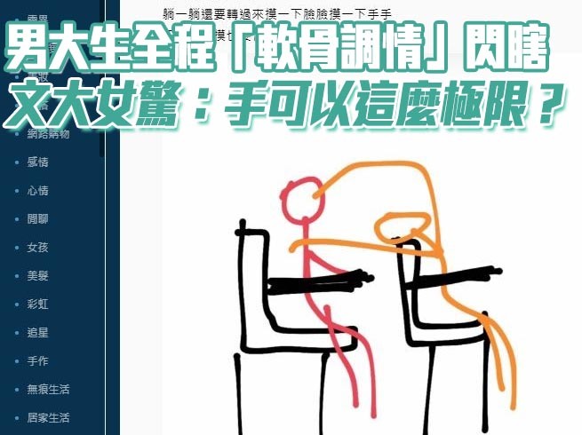 女大生當天就坐在情侶旁邊,由於對方動作不小,想自動忽略都難,加上是外系的課,沒半個人認識,所以也無法換座位,她在dcard說道,「我知道熱戀期情侶都是充滿熱情的,我一點也不反對大家感情好,但是拜託不要這麼肆無忌憚QQ。」