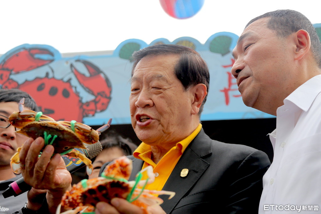 ▲侯友宜舉辦漁夫市集,李昌鈺現場鑑定萬里蟹的性別 。(圖/記者歐昶廷攝)