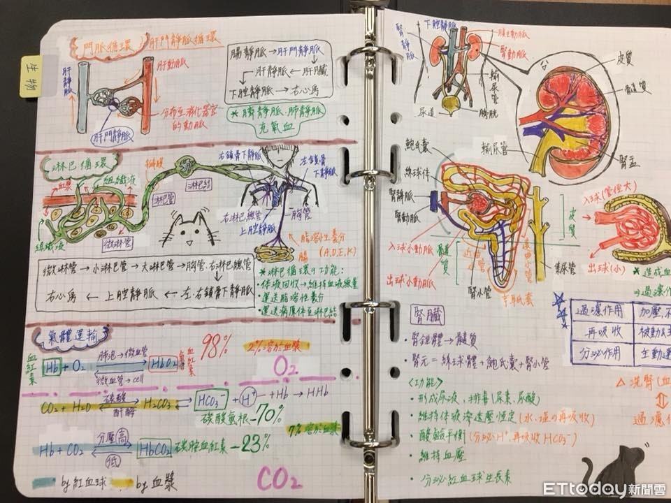 他表示,女兒現在讀第三類組,對生物醫學很有興趣,現在正努力奮鬥中,而筆記是在課後整理出來的,應該花了不少時間,不過在畫畫的過程中,對女兒來說或許是一種壓力的釋放。