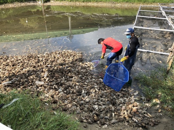 ▲打撈上岸的有毒大閘蟹,經清查共有1470公斤 。(圖/記者黃孟珍翻攝)