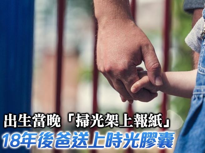 台中一位爸爸為了打造獨一無二的「時空膠囊」,特地在女兒出生當晚買遍全台各家報紙,好讓孩子長大後能瞭解「出生時,自己的國家、世界大概是什麼樣子…」。如今轉眼間18年過去,女兒已是一位亭亭玉立的姑娘,而他也親手將膠囊交給女兒。故事登上臉書後,網友看完都非常感動,大讚原PO根本是一位浪漫的超級暖爸,引發討論。