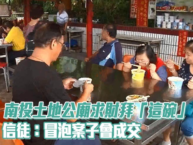 南投縣北中寮一間土地公廟供桌上幾乎看不到鮮花素果,取而代之的是香味四溢的泡麵,原來是信徒認為拜過的泡麵吃下肚,不僅可以獲得土地公保佑,還可以補財氣,如此吸引不少外地人來朝聖,希望可以保平安、發大財。