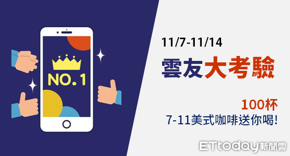 狂賀!ETtoday新聞雲剛滿7歲又創佳績啦!蟬連ComScore最受歡迎網站,ETtoday新聞雲特此感謝千萬網友支持,即日起至11/14(三)止舉辦「雲友大考驗」活動,趕快下載新聞雲App,點選側欄參加活動回答相關問題,就有機會抽中7-11熱美式咖啡唷!限量100杯唷~