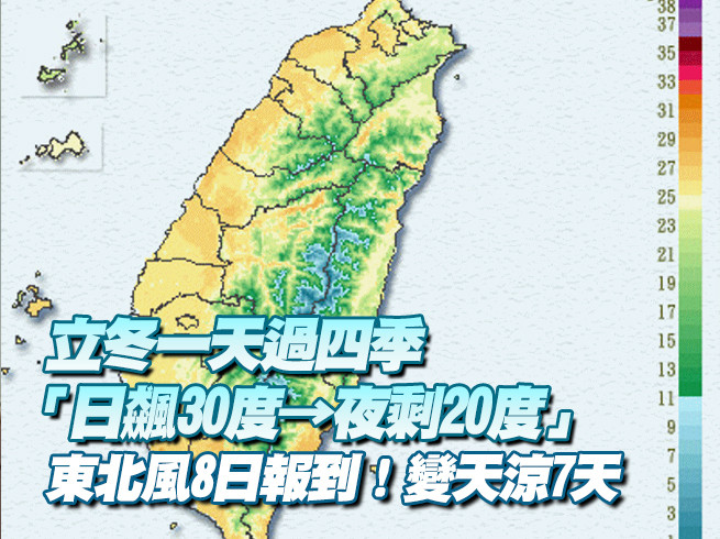 ▼東北風8日報到!變天涼7天。