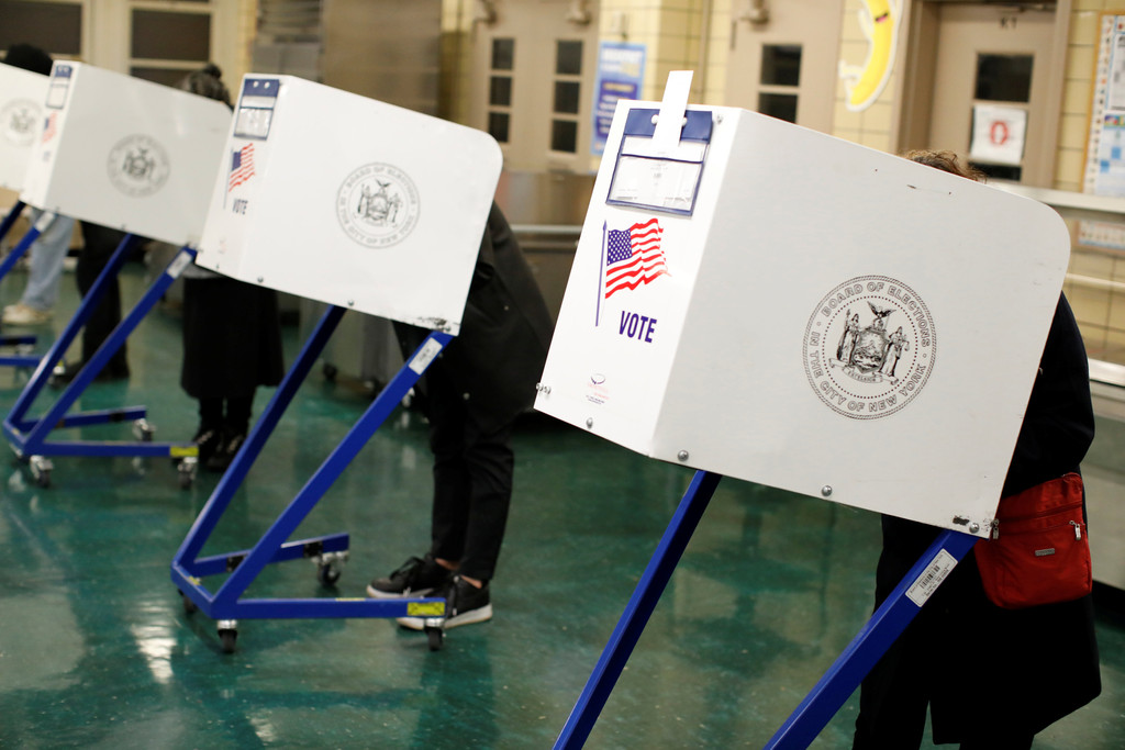 ▲選民在紐約曼哈頓一處投票站投票。(圖/路透)