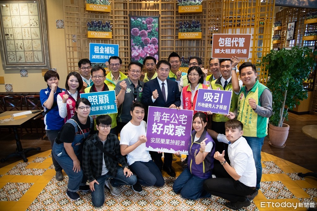 民進黨台南市長候選人黃偉哲、競選發言人蔡旺詮議員、市議員呂維胤、陳金鐘、議員候選人李宗翰、李偉智、李啟維、陳世霖、陳宗明、陳俊安、沈家鳳、沈震東、蔡筱薇,與南科青商會的青年朋友及學生相約在南紡購物中心一樓咖啡廳、交換青年議題想法。