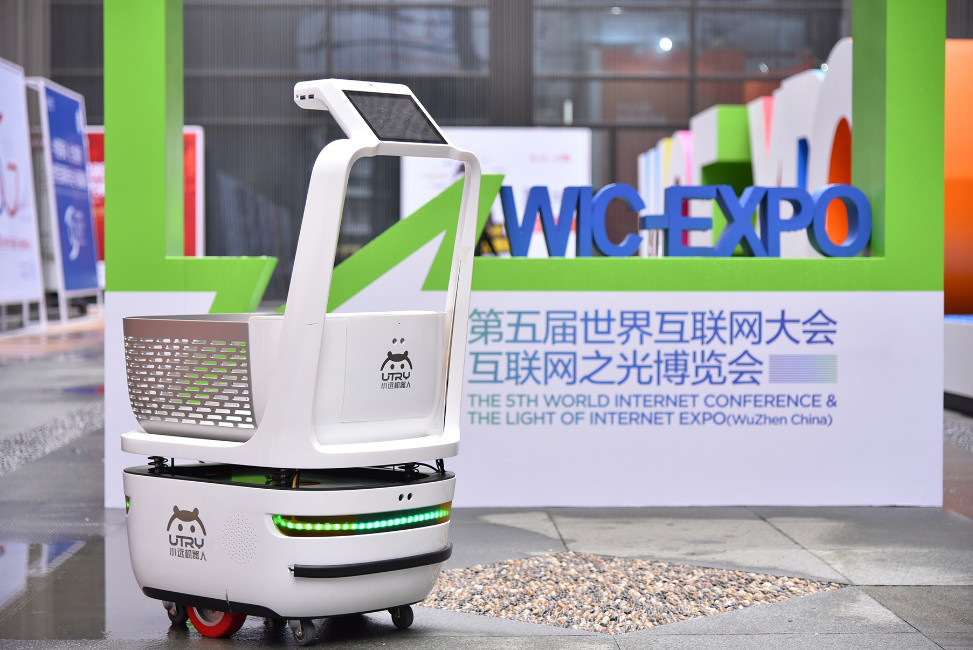 第五屆互聯網大會上展出多項智能產品,包括一台名叫「小跟班」的智能推車,能夠自動跟隨主人幫忙運送物品或行李,載重30公斤,在會場中協助博覽會志願者運送水、紀念冊、明星片等展商物資,如果主人跑得太快,它跟不上還會撒嬌。