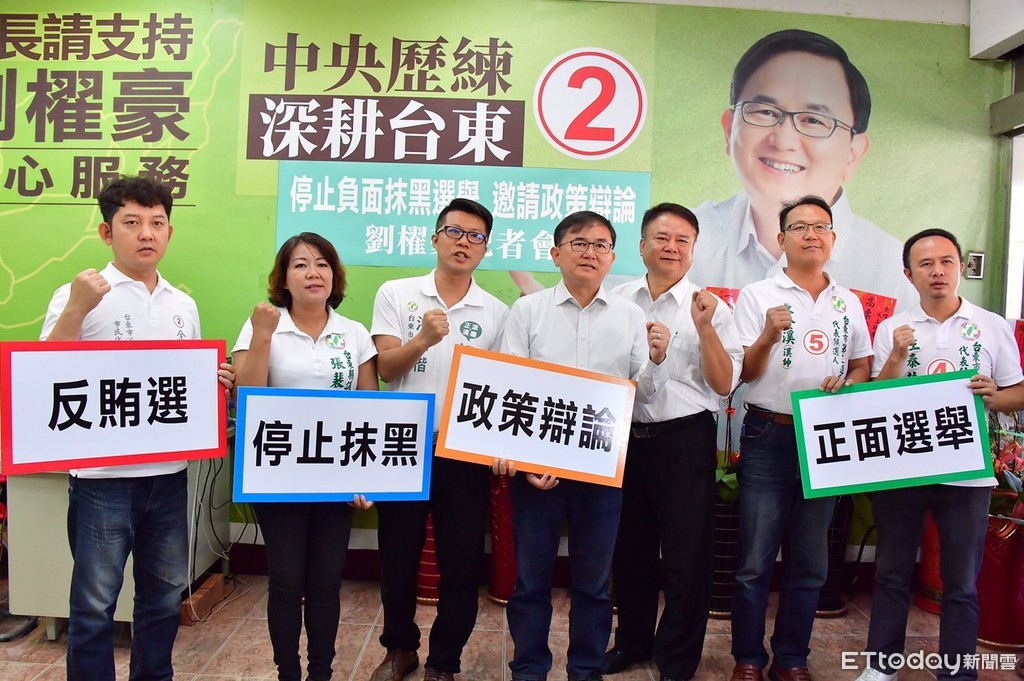 台東縣長候選人劉櫂豪7日召開「停止負面抹黑選舉 邀請政策辯論」記者會,並公布劉櫂豪的正面競選呼籲影片,希望透過影片讓選民瞭解劉櫂豪對於正向選舉的堅持,同時呼籲競爭對手出面政策辯論,對於劉櫂豪的評論可以在公開的場合面對面進行,不要再以負面抹黑的方式選舉。