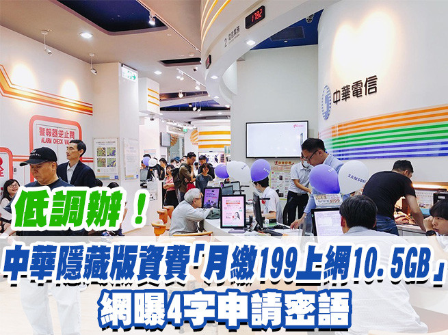 一年一度的雙11狂歡檔期倒數,電信業者大打折扣戰,台灣大、遠傳有單辦門號499上網吃到飽,中華電信則用399快閃方案、每月上網38GB迎戰。不過近日就有網友發現,老大哥中華還有一項神秘的隱藏版資費,只要繳199元,就享有10.5GB流量,另送網內外市話通話分鐘,而關鍵密語是「機不可失」!