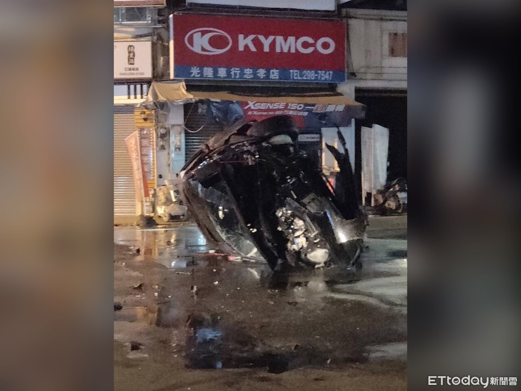 ▲小客車翻車且火燒車,駕駛卻棄友人不顧落跑。 (圖/記者李忠憲翻攝)