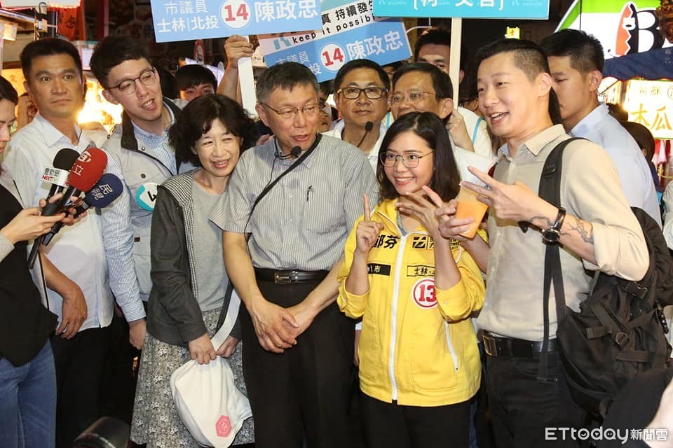 值得一提的是,時代力量台北市黨部主委、立委林昶佐與士林北投區議員候選人黃郁芬,無巧不巧也出現在夜市內的慈誠宮前吃東西,隨後與柯一行人上演「巧遇」戲碼。而柯文哲也未避諱,與林昶佐簡單寒暄後,便與陳建銘、陳政忠、黃郁芬等人進入慈誠宮上香拜拜。