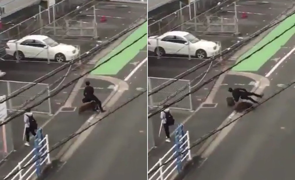 日本福岡市JR今宿站上月26日發生一起野豬傷人事件,事發當下的影片在本月3日於推特曝光,一名穿著西裝的上班族在路上突然受到攻擊,瞬間被撞翻倒地,幸好傷勢並未危及性命,送醫縫了13針已經沒有大礙。