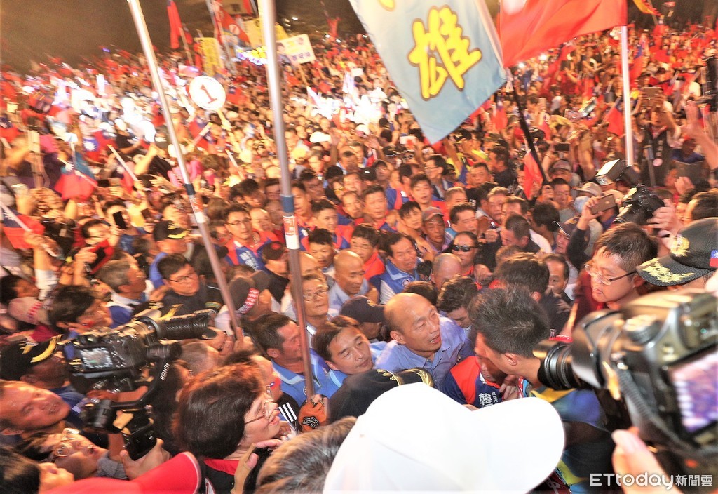 ▲韓國瑜在旗山造勢,現場民眾不時揮舞國旗。(資料照/記者宋德威攝)