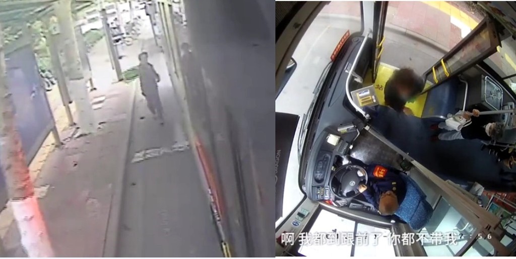 這起事件發生在5日,影片中可看到,一輛公車停靠站時,一名老人下了車,正要開車時,一名剛從後方下車的婦人便跑了過來,一路追趕公車一邊用購物袋猛砸,結果砸破了車窗,車子才終於停下。