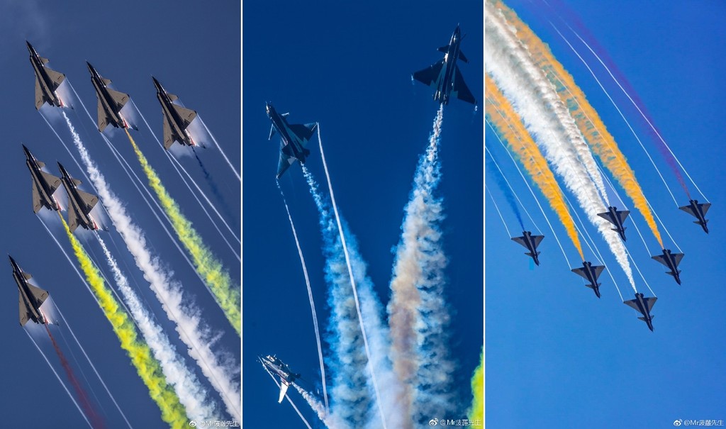 雖然票價不低,但當地民眾熱情不減,現場觀看表演的人海十分壯觀,「八一」飛行表演隊的殲-10戰機也變成「歡呼收割機」。今天參加表演的殲-10B戰機有單座機和雙座機,飛行隊開頭進行大仰角起飛,稱仰角達70度,展現發動機的優異性能。