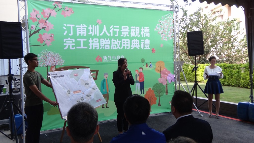 沈慧虹指出,市長林智堅打造人本友善新竹市,均衡城市發展,力推步行城市計畫,包含東門城周邊、城隍廟周邊、隆恩圳步行空間、汀甫圳學府之道、新竹公園市民廣場及全市步行指標系統等六大亮點,總計將投入3.625億經費。此次受贈人行景觀橋,除可改善鄰里交通,也有助於建構整體都市步行路網,更希望拋磚引玉,引領步行友善、優先禮讓行人的思維。