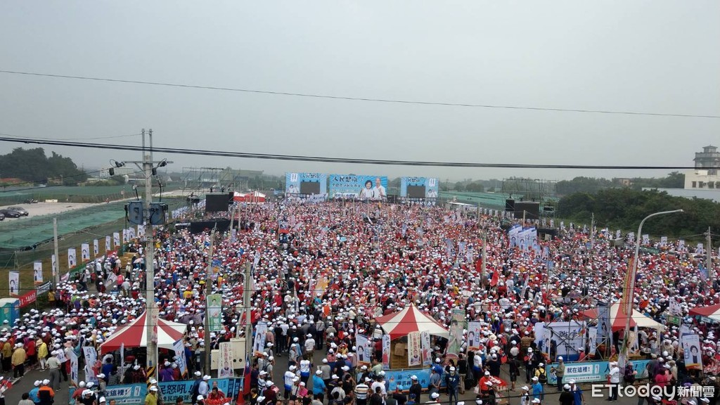 國民黨高雄市長候選人韓國瑜10日上午赴雲林西螺鎮,與國民黨雲林縣長候選人張麗善同台,一起參與「1110人民怒吼!全國農漁民齊發聲」活動。為了這次活動,現場排1萬2000張椅子,2位候選人預計10點10分登台,許多民眾早早就到場卡位,為了就是要近距離看到心目中理想的候選人一面,也想向政府表達農漁民的心聲。