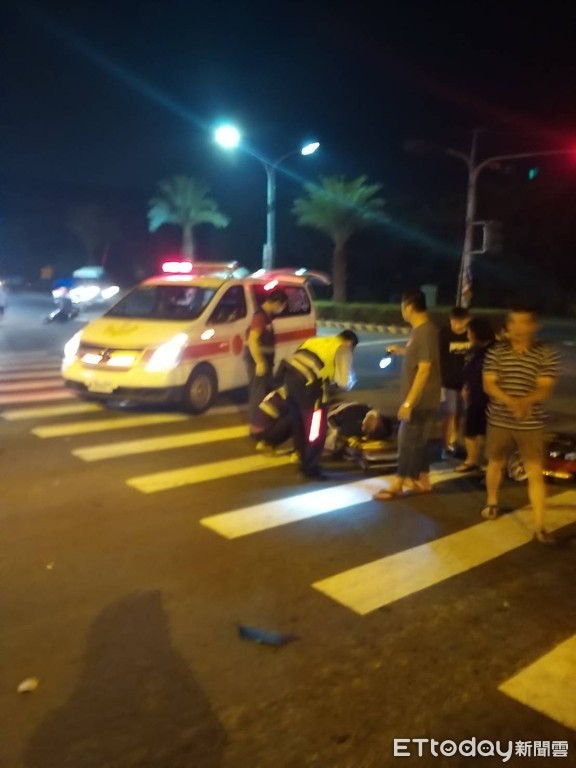 ▲屏東縣內埔工業區昨晚發生自小客車疑似追撞前方兩台機車車禍,真正發生原因還在釐清。(圖/記者陳崑福翻攝,以下同)